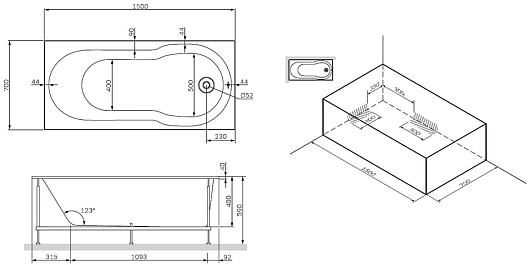 Габариты ванны – 150 на 70 на 40 сантиметров. По запросу покупателя быть установлены слив-перелив и каркас.- дизайн от Danelon Meroni (Великобритания / Италия) выполнен с учетом разделения зон: на душевую и релаксационную для комфортного приема водных процедур в ванне;
