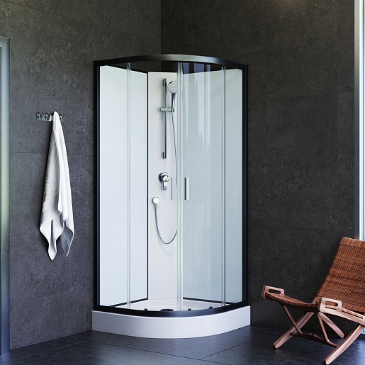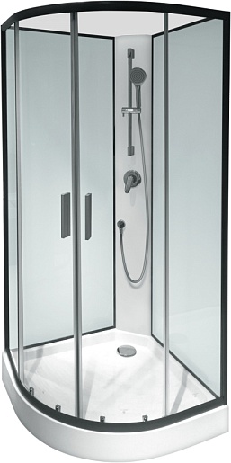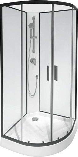 Немецкая душевая кабина Joy 90x90 W85C-001-090GT в форме полукруга отличается строгим дизайном, в котором нет ничего лишнего. Раздвижные дверцы изготовлены из прозрачного стекла толщиной 6 миллиметров, гарантируя стойкость даже при значительном физическом воздействии; двойные ролики из металлопластика обеспечивают плавный ход дверец. Цвет задней стенки – белый, цвет корпуса – чёрный.