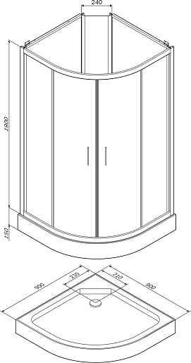 В комплекте: душевая кабина, поддон, сифон, смеситель, душевая лейка, шланг, штанга с держателем лейки.