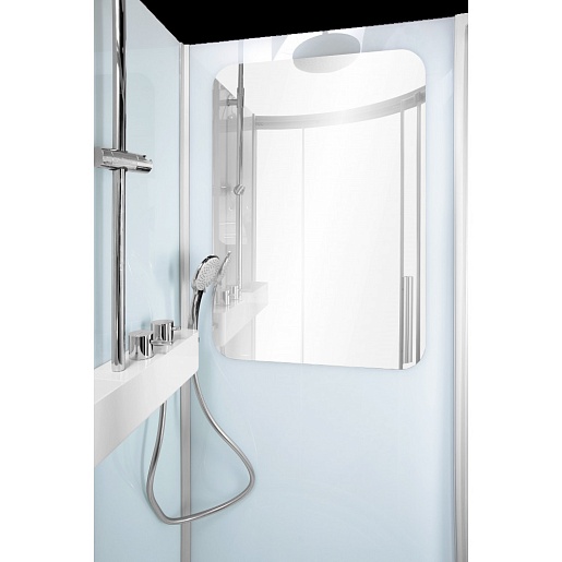 - полноценное зеркало, интегрированное в заднюю стенку кабины