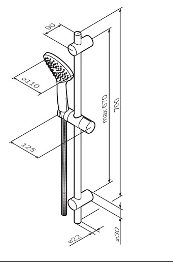 Душевой комплект Gem F0190100- 3-режимный ручной душ 110 мм с регулируемым держателем