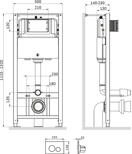- Пневматическая пластиковая клавиша смыва.