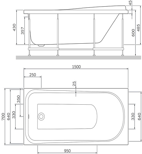 - Подходит для акриловой ванны Am.Pm Like 150x70