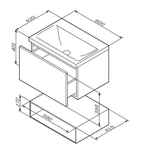 Тумба под раковину Gem 60 белый глянец, с 1 ящиком