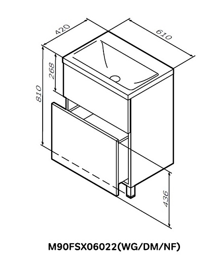 - M90FSX06022GM32 GEM, База под раковину, напольная, 60 см, 2 ящика push-to-open, графит матовый
