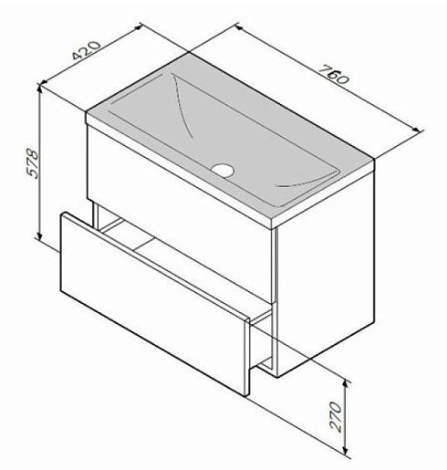 Тумба под раковину Gem 75 белый глянец, с 2 ящиками