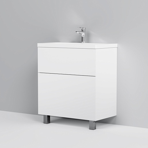 Тумба под раковину Gem 75 белый глянец, напольная, с 2 ящиками