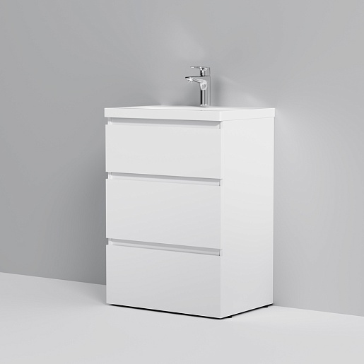 Тумба под раковину Gem S 60 белый глянец,напольная, с 3 ящиками