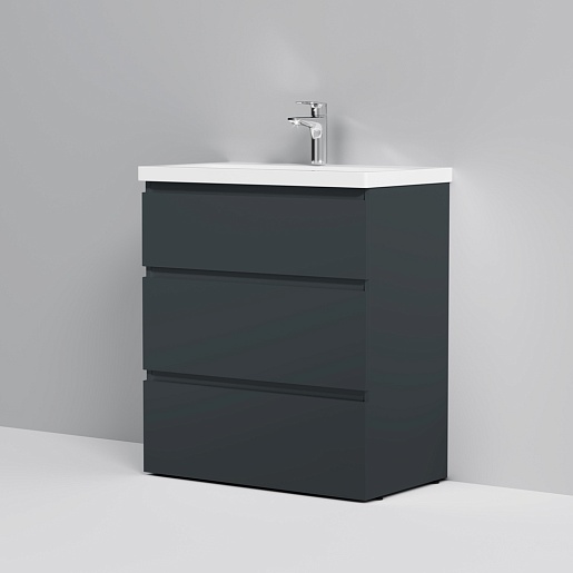 Тумба под раковину Gem S 75 графит матовый, напольная, с 3 ящиками