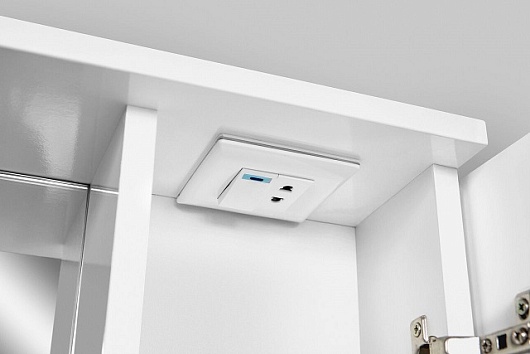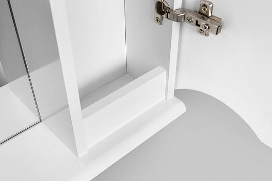 Тройной мебельный комплект для ванной комнаты от германского произодителя Am.Pm Like 65 R включает в себя мебельную раковину, зеркало-шкаф и подвесную тумбу под раковину белого цвета. Внутри шкафчика имеется три полочки, расположенные справа от зеркала, дверца с доводчиком плавно движется по своей траектории. Имеется подсветка для использования шкафчика в ночное время. Перед зеркалом также имеется пространство для размещения тех или иных предметов.