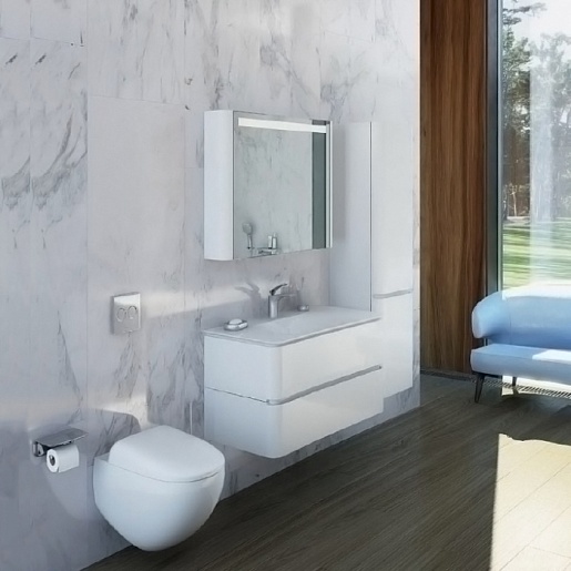 Зеркальный шкаф Sensation 100, с подсветкой, белый, глянец