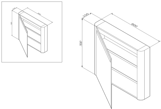 - арт. M30MCL0801NF, 2 типа подсветки (теплый и холодный) с функцией настройки яркости, сенсорный выключатель, розетка, дверь с доводчиками.