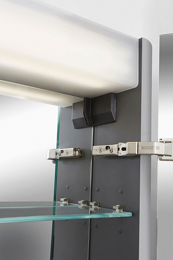- арт. M30MCR0801FG, 2 типа подсветки (теплый и холодный) с функцией настройки яркости, сенсорный выключатель, розетка, дверь с доводчиками.