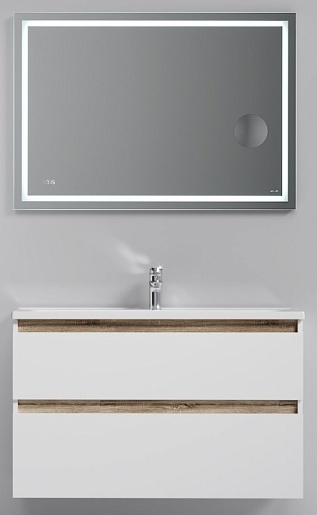 - M91AMOX1003WG Gem, зеркало с контурной LED-подсветкой, встроенными часами и линзой, 100 см