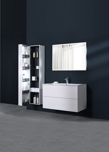 Описание: подвесной пенал для ванны, фурнитура push-to-open, фасад с встроенными полками.