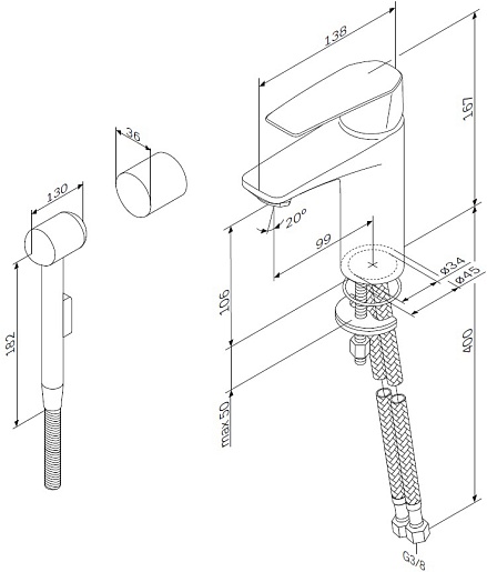 - Гибкая подводка 3/8''.