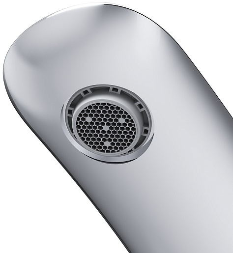 - Cкрытый регулируемый аэратор позволяет менять угол наклона струи.