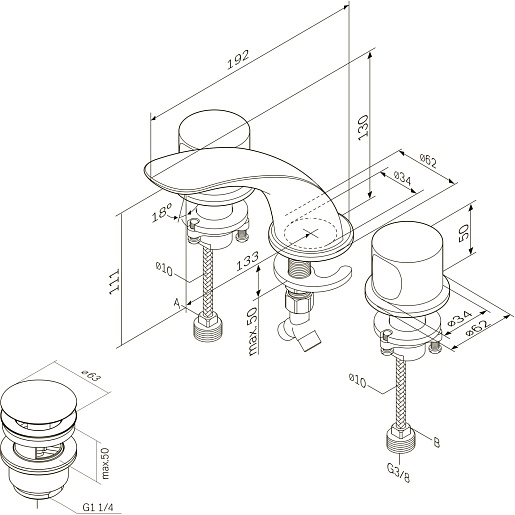 - Гибкая подводка 3/8''.