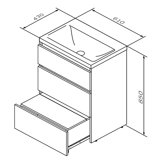 Тумба под раковину Gem S 60 графит матовый, напольная, с 3 ящиками