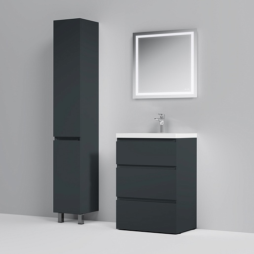 Am.Pm Тумба с раковиной Gem S 60 графит матовый, напольная, с 3 ящиками