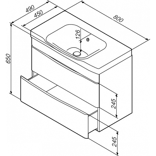 - M80FHX0802WG Like, База под раковину, подвесная, 80 см, 2 ящика, белый, глянцевая
