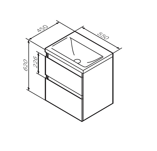 - M85AFHX0552WG X-Joy, База под раковину, подвесная, 55 см, 2 ящика, белый глянец