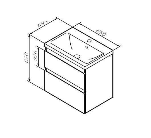 - M85AFHX0652WG X-Joy, База под раковину, подвесная, 65 см, 2 ящика, белый глянец