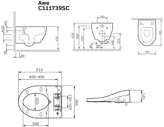 Унитаз подвесной AM.PM Awe C111739SC с электронной крышкой-биде Clean Care.