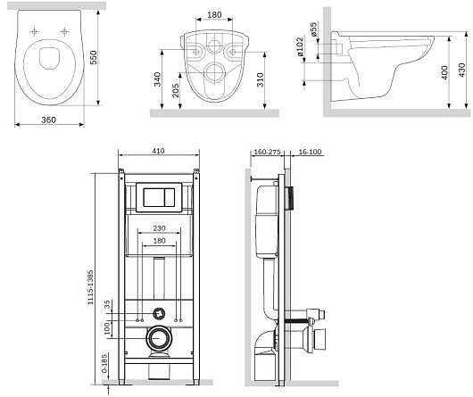 - Высота инсталляции: 1115-1385 мм.