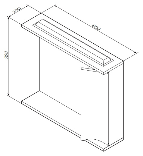 Описание: влагостойкое зеркальное полотно, шкафчик, полочка, розетка, доводчики, подсветка.