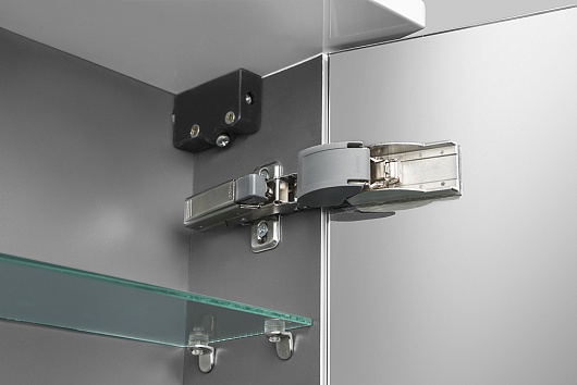 Описание: влагостойкое зеркальное полотно, шкафчик, полочка, розетка, доводчики, подсветка.