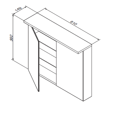 Описание: влагостойкое зеркальное полотно, шкафчик, полочки, розетка, доводчики, подсветка.