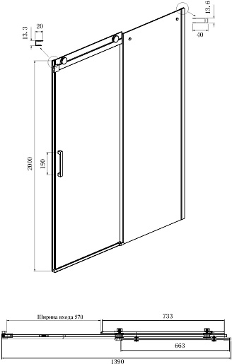 - Дверь: одна раздвижная дверь, одно неподвижное стекло.
