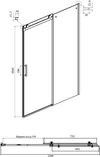 - Дверь: одна раздвижная дверь, одно неподвижное стекло.