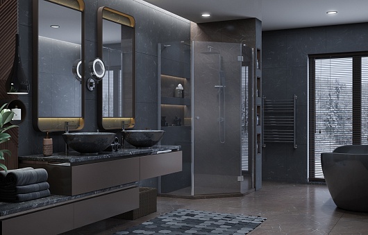 - пятиугольное душевое ограждение с распашной наружу дверью