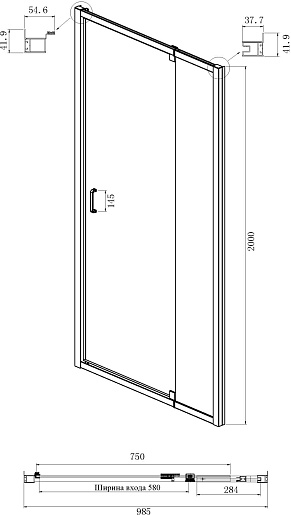 - Тип: душевое ограждение (дверь в нишу с боковой стенкой).