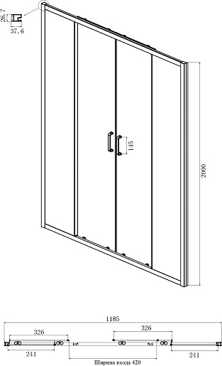 - Дверь: две раздвижные двери, два неподвижных стекла.