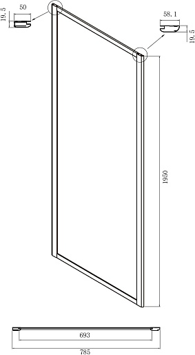 - Тип: душевое ограждение (дверь в нишу с боковой стенкой).