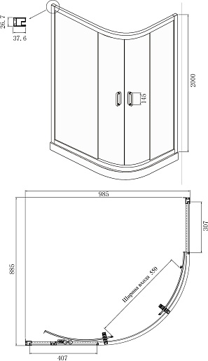 - Ширина входа: 550 мм.