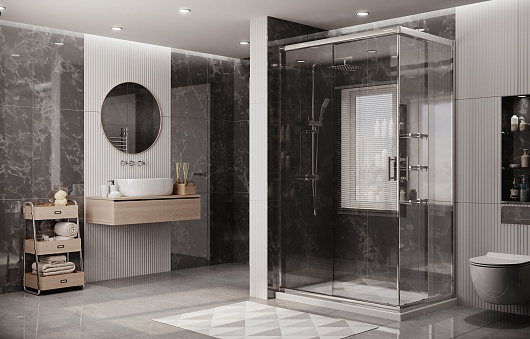 - прямоугольное душевое ограждение с раздвижными дверьми