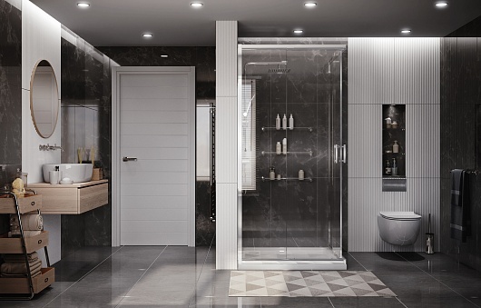 - квадратное душевое ограждение с раздвижными дверьми