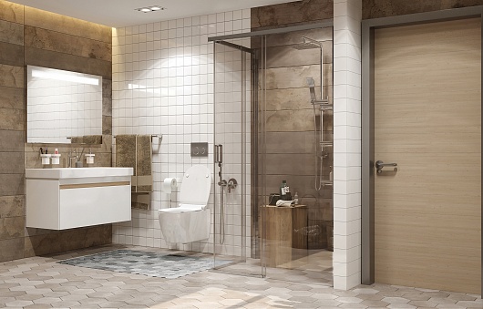 - прямоугольное душевое ограждение с раздвижными дверьми