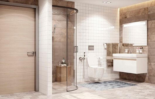 - полукруглое душевое ограждение с раздвижными дверьми