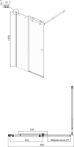 - Конструкция: одно неподвижное стекло, одна раздвижная дверь.