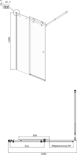 - Конструкция: одно неподвижное стекло, одна раздвижная дверь.