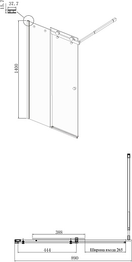• Конструкция: одно неподвижное стекло, одна раздвижная дверь.
