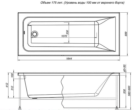 - устройство перелива, каркас, экран и другие опции приобретаются отдельно
