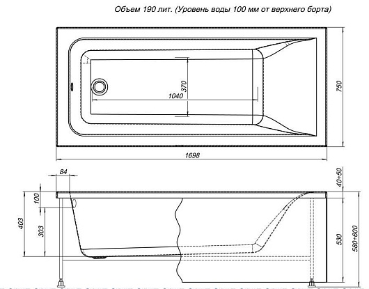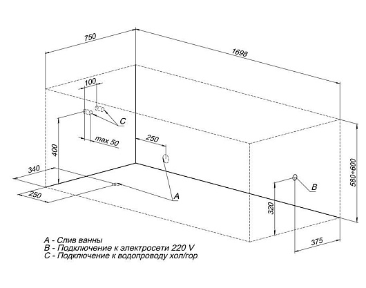 - устройство перелива, каркас, экран и другие опции приобретаются отдельно