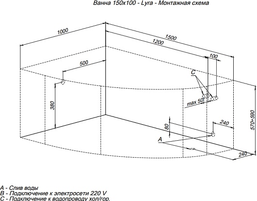 Акриловая ванна Lyra 150x100 L - арт. 00254757.