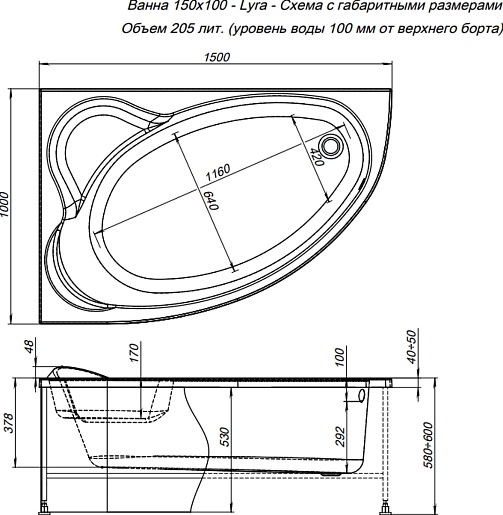 Aquanet Акриловая ванна Lyra 150x100 L